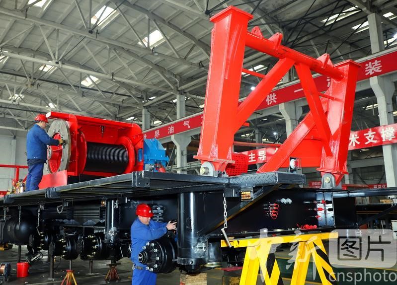 2月18日,在河南省南陽市一家石油裝備公司(南陽二機石油裝備集團股份有限公司),工人在檢測區作業。
