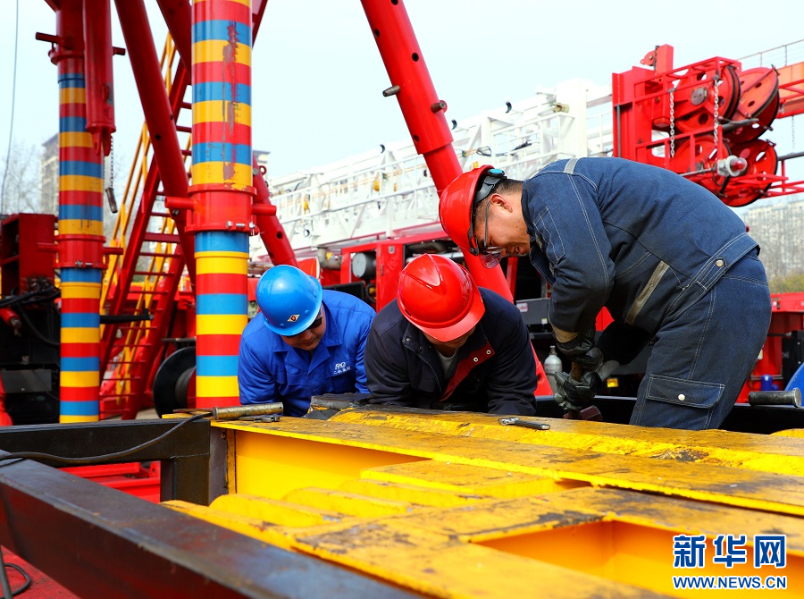 2月18日,河南省南陽市,一家石油裝備公司(南陽二機石油裝備集團股份有限公司)的工人在產品試驗區作業。(高嵩 攝)