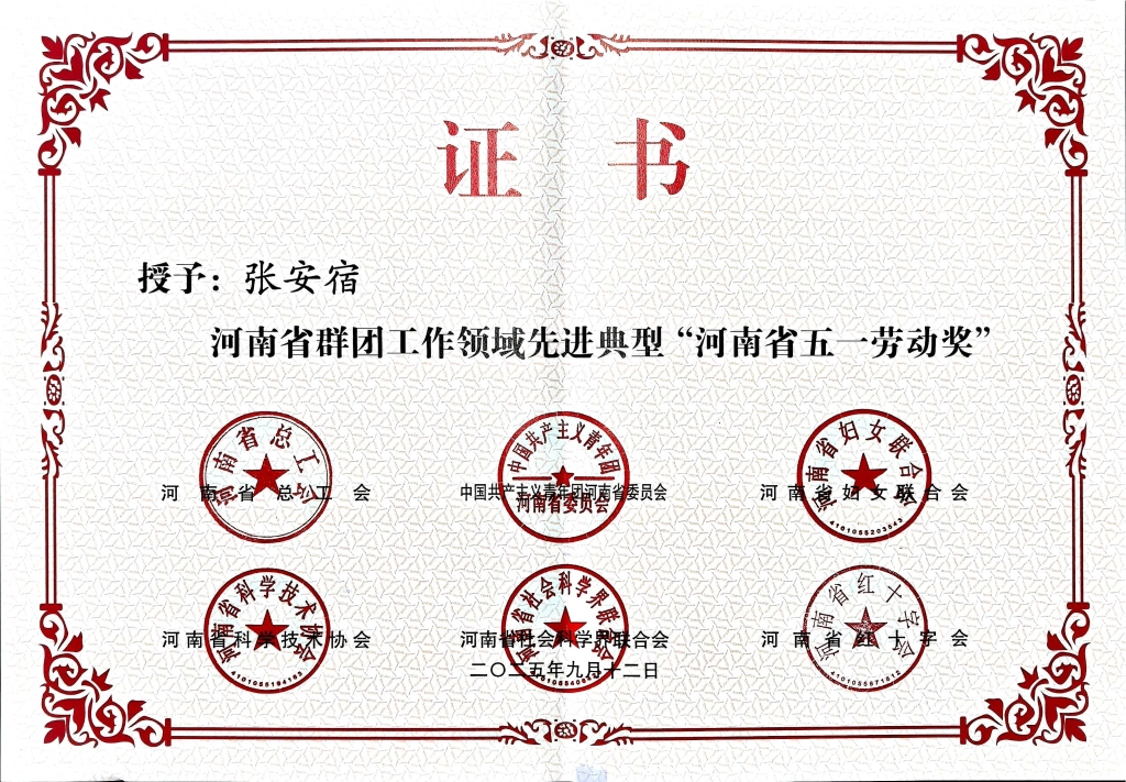 河南省五一勞動獎是省總工會設立的榮譽獎項,用於表彰在全省經濟建設、政治建設、文化建設等方麵作出突出貢獻的先進集體和個人,旨在弘揚勞模精神、勞動精神、工匠精神,激發職工群眾的勞動熱情和創造活力。