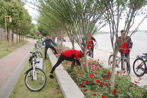 上午8:30,22人組成的誌願服務隊伍,騎自行車從公司綜合辦公樓前出發,經中州路、北京路、臥龍路、濱河路,一路騎行至南陽白河濕地公園。
