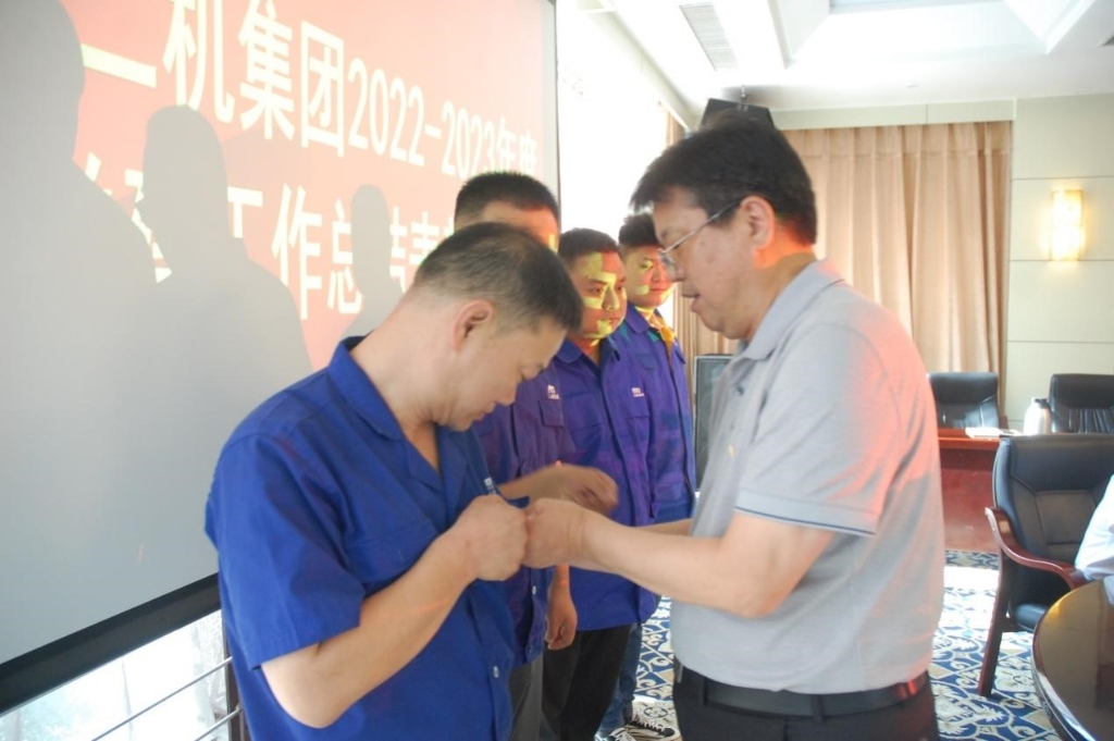 6月30日,南陽二機集團黨委書記、董事長楊漢立為新發展黨員頒發、佩戴黨員員工工牌。