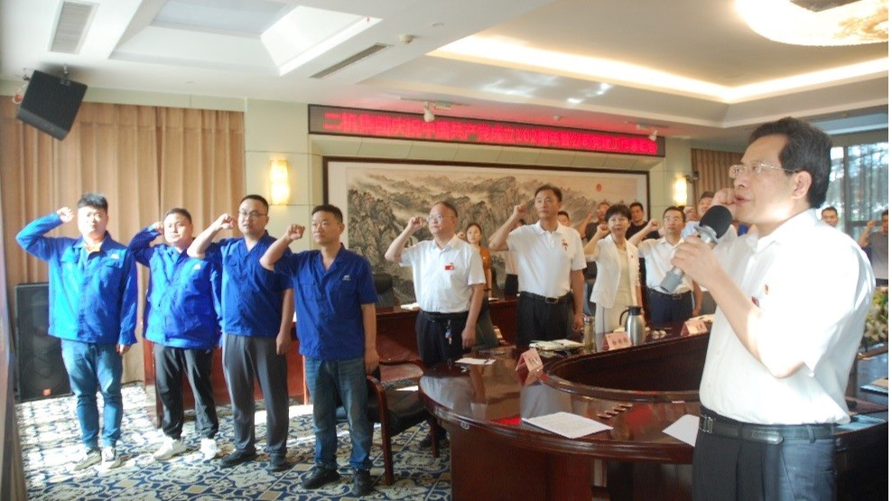 6月30日,南陽二機集團黨委舉行新黨員宣誓、老黨員重溫入黨誓詞儀式,堅定理想信念,彙聚奮進力量。