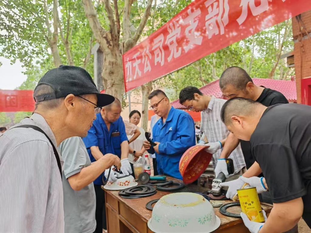 6月28日上午8時,南陽二機集團公司黨委組織的迎"七一"黨員誌願服務大集在油田社區開集。來自公司各基層黨支部的黨員誌願者們,聚焦群眾需求,發揮專業特長,圍繞生活維修、技術服務、政策谘詢等領域,開展磨刀焊補、家電維修、消防知識普及、社保政策解讀等十餘項便民服務,以實際行動踐行"為人民服務"宗旨。
